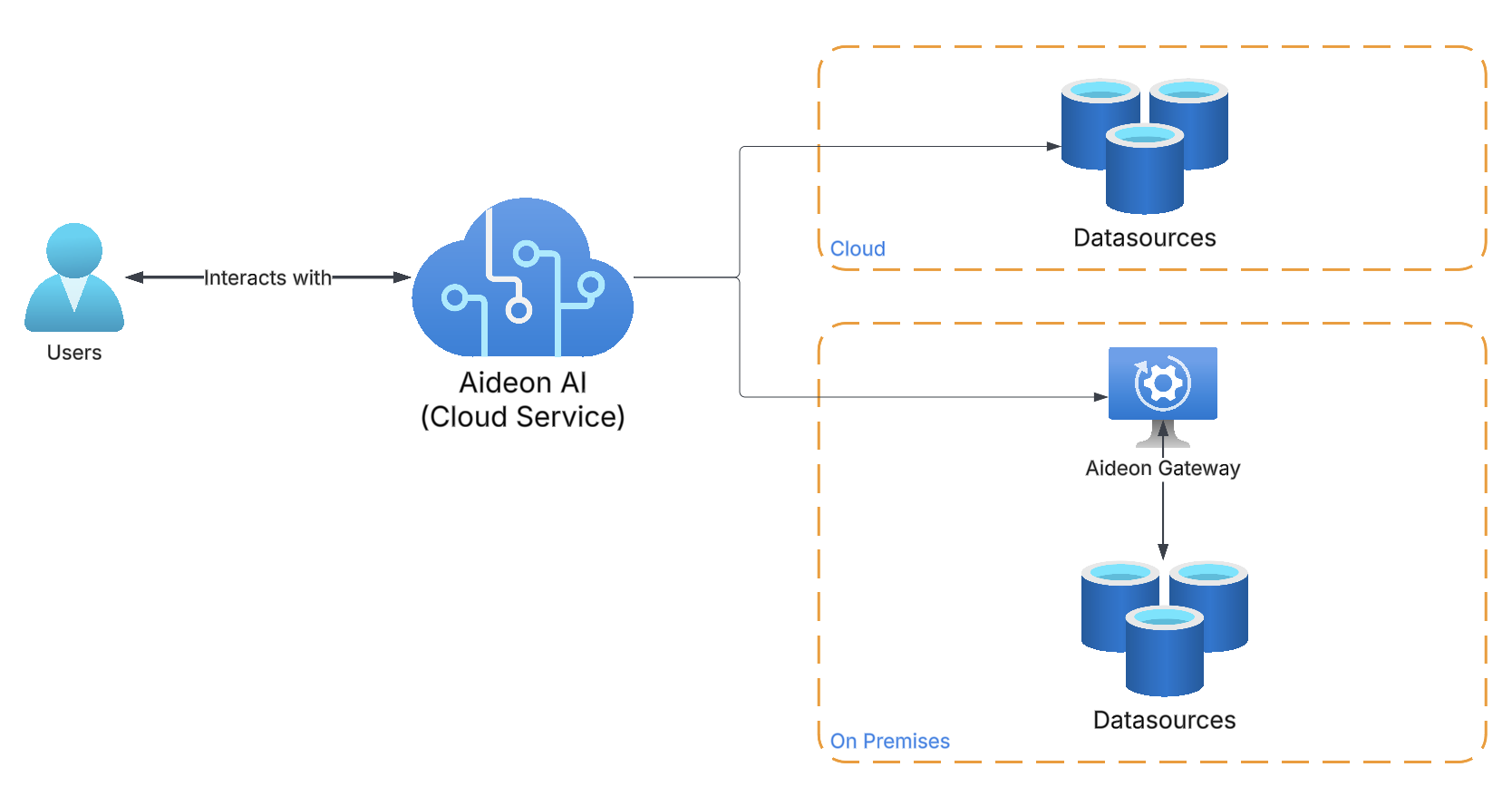 If the database is hosted on-premises, the query is executed securely through the Aideon Gateway Agent, which connects the app to local systems without exposing them to the public internet. To keep responses fast, Aideon combines schema caching (avoiding repeated scans), retrieval-augmented generation (focusing queries on the most relevant tables), and asynchronous request handling (processing many queries in parallel). Together, these optimisations ensure that answers, whether tables, charts, or scheduled reports, are delivered within seconds, even under heavy enterprise workloads.